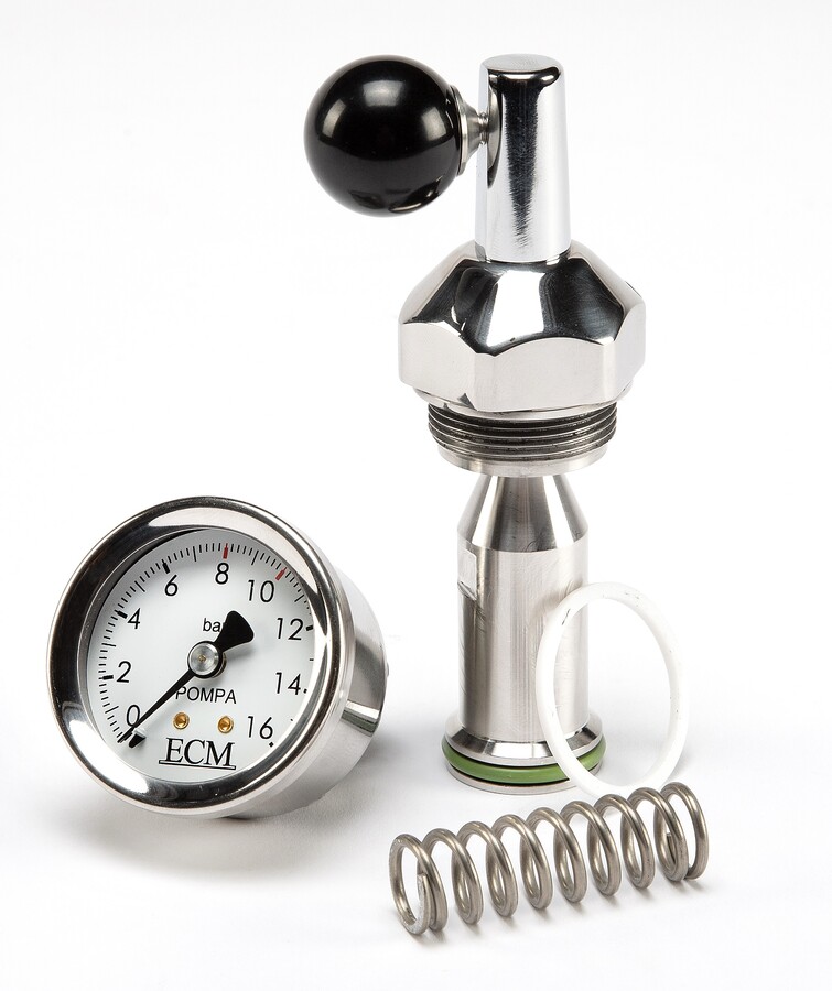 The new ECM Flow Control Valve allows you to adjust the flow of water in your brew group to manually profile your extractions. The stainless steel needle valve allows the user to vary the amount of water flowing through the group. Variable flow control allows for lengthy pre-infusion for more even saturation and extraction of your espresso.