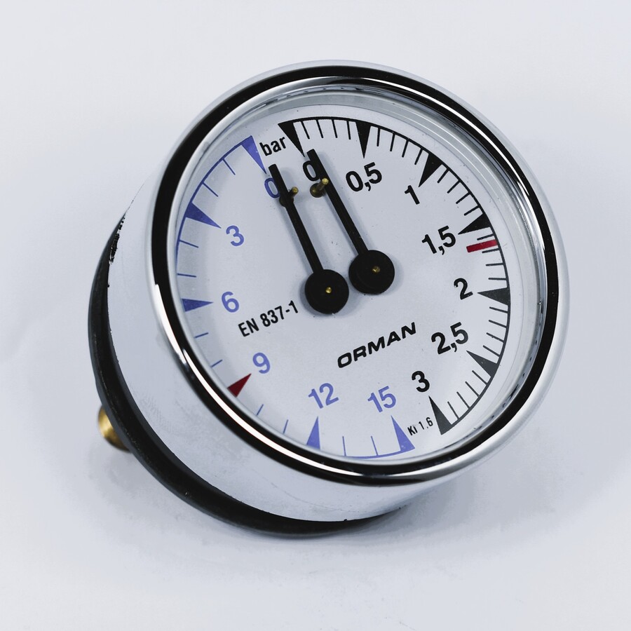 Double scale 0-3 bar / 0-15 bar. Fittings 1/8''M. Body DIA 60mm. Frame DIA 60mm. Suitable to Elektra (BARLUME) coffee machines.